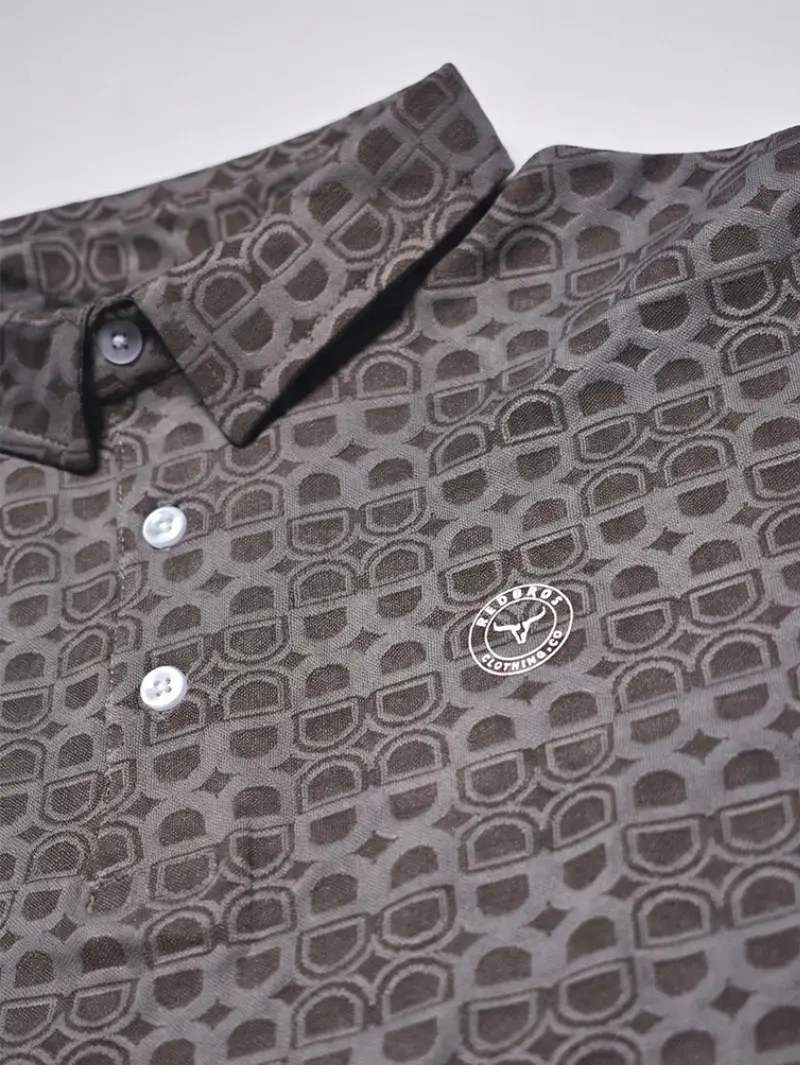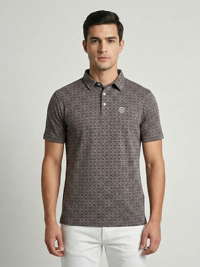 Step up your smart-casual game. Our premium brown designer polo t-shirt combines sophisticated style with exceptional comfort. Featuring a unique interlocking geometric semicircular pattern, this polo brings a refined, modern edge to a classic silhouette. Crafted from high-quality Terylene, it offers a lightweight, breathable feel with an excellent drape that resists wrinkles, ensuring you look sharp from the office to the weekend.