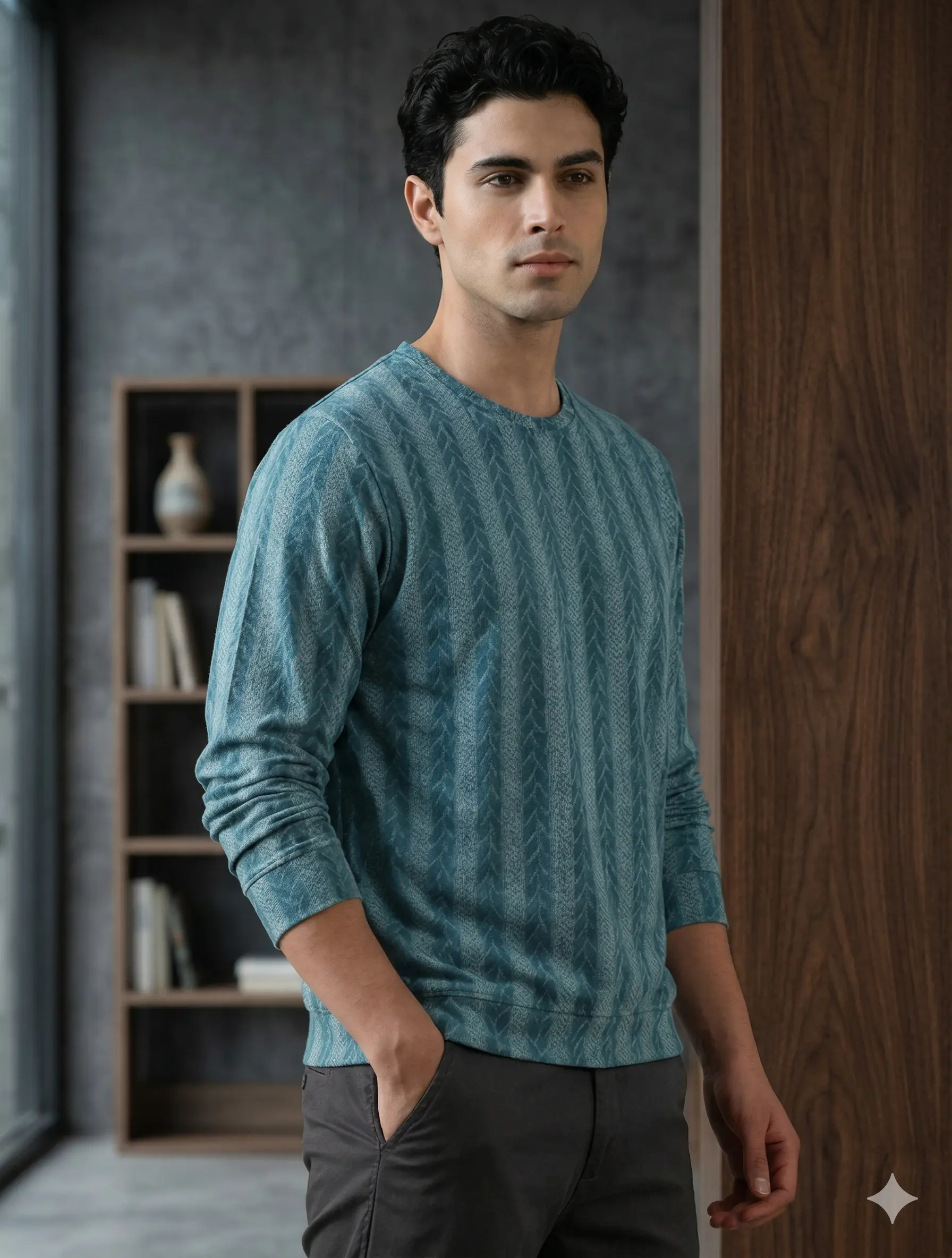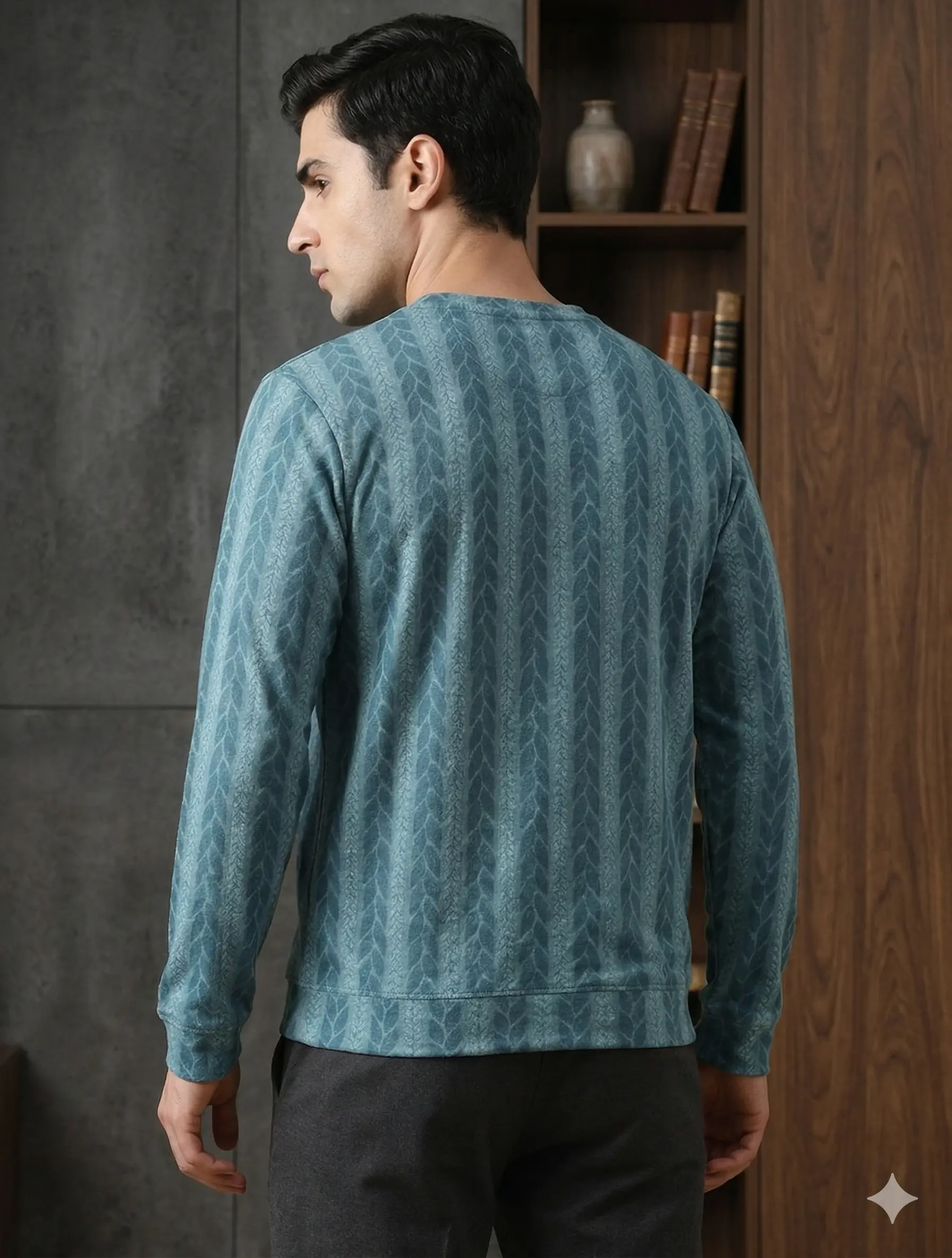 Why This Dark Sea Green Designer Sweatshirt Stands Out When it comes to luxury menswear, the visual details matter immensely. This stunning garment isn’t just another basic, bulky pullover; it is a masterclass in modern, streamlined design. Featuring an intricate, vertical chevron-style designer pattern, this sweatshirt provides a rich visual texture that catches the eye and naturally elongates your silhouette.