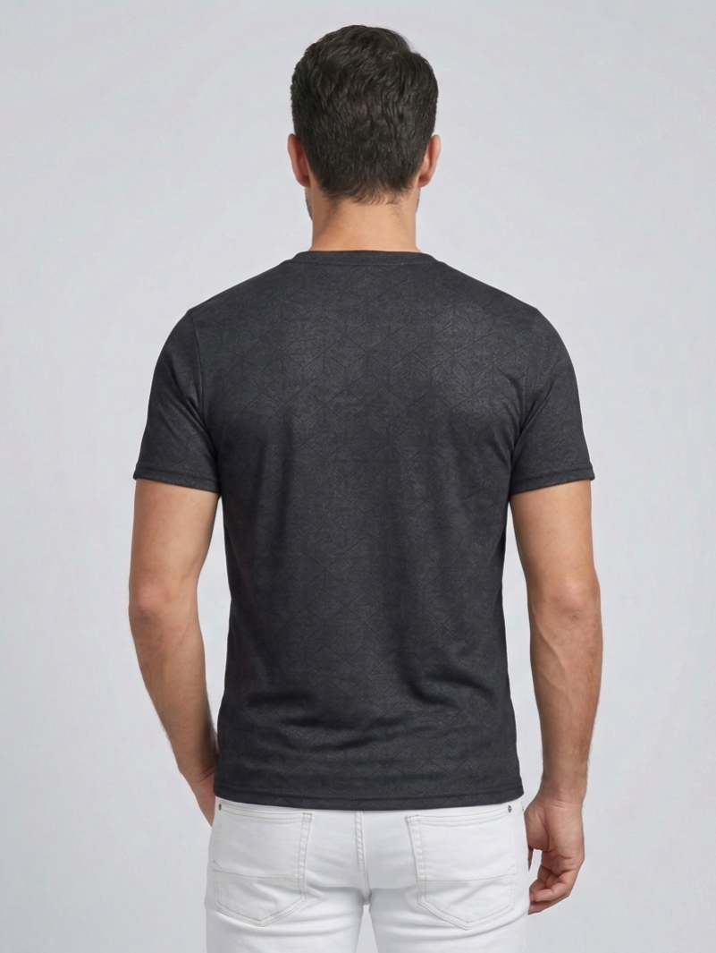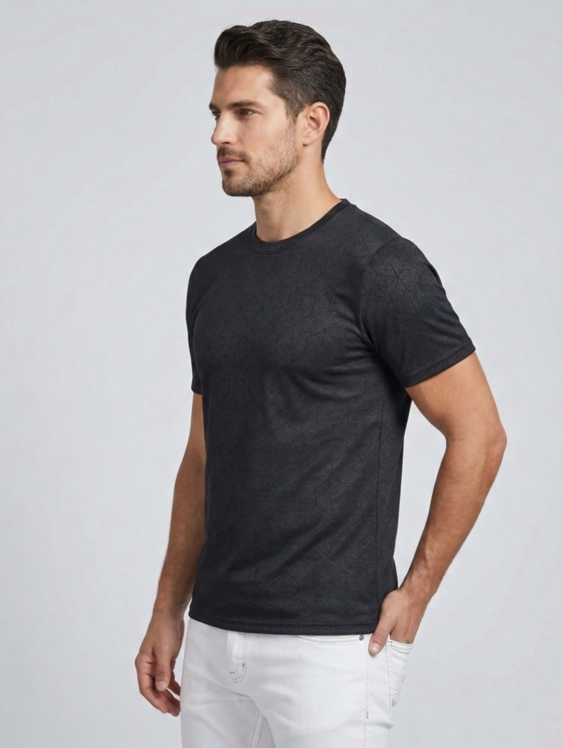 Premium Black Geometric Crew Neck T-Shirt for Men | Redbros